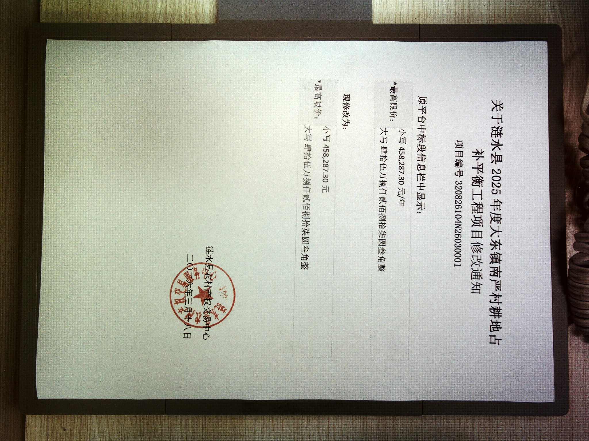 涟水县2025年度大东镇南严村耕地占补平衡工程修改通知